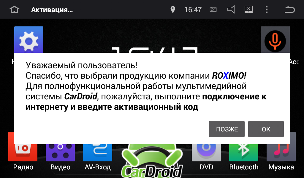 Далее обратите внимание на програмные отличия оригинальной продукции ROXIMO CarDroid: