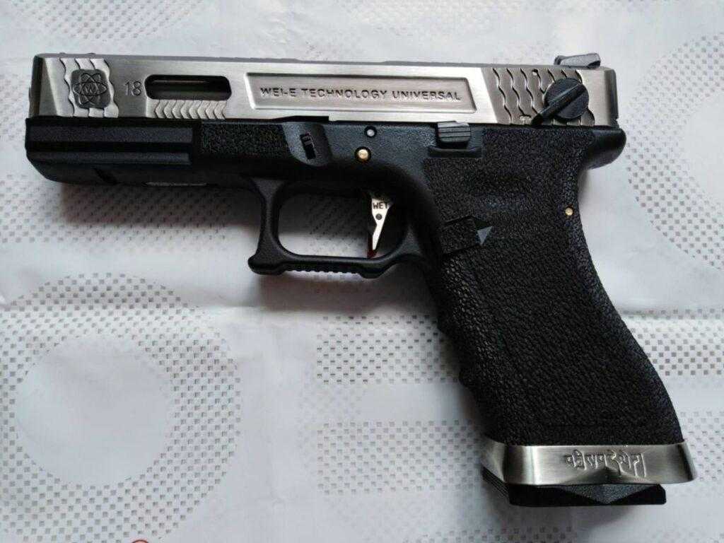 Не осталась в стороне от страйкбольного оружия и знаменитая Wear Tech, выпускающая целый ряд страйкбольного оружия. Модель 18С от WE характеризуется высоким качеством сборки, использует механизм, работающий на Green Gas.