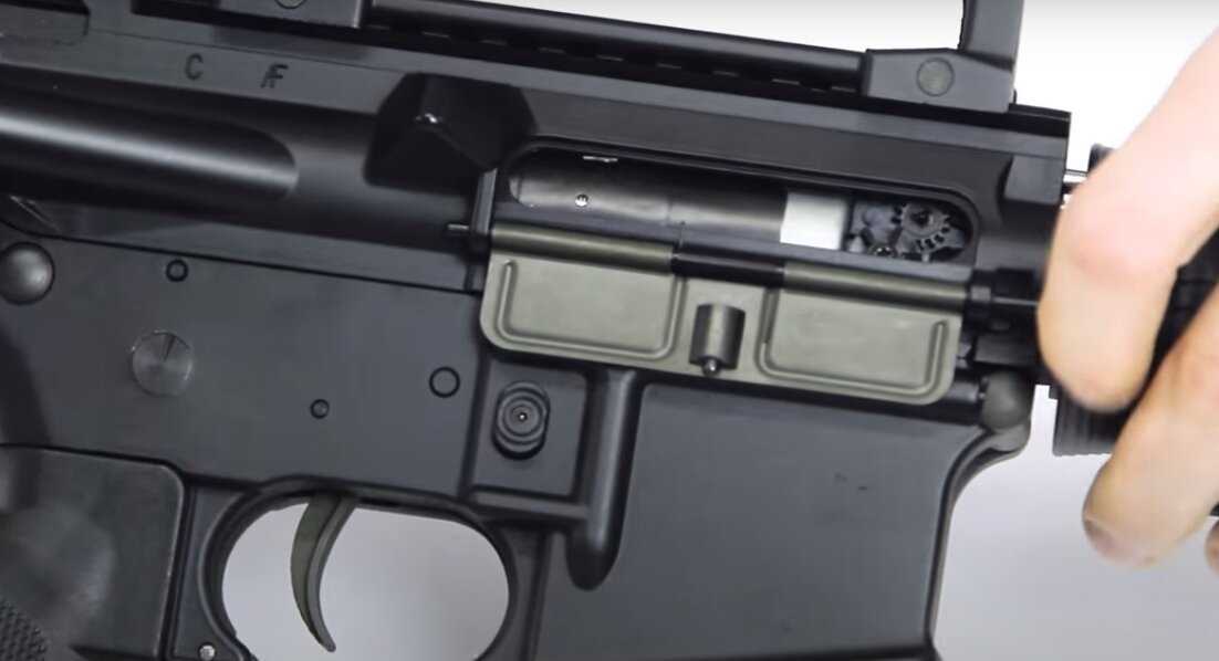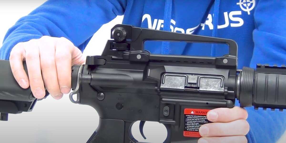 Для удобства регулировки у многих приводов есть функция имитации затворной задержки. Если потянуть за рукоятку перезаряжания, открывается шторка, имитация затвора отходит назад, открывая доступ к колесу регулировки хоп-апа. Теперь хоп-ап можно удобно отрегулировать.