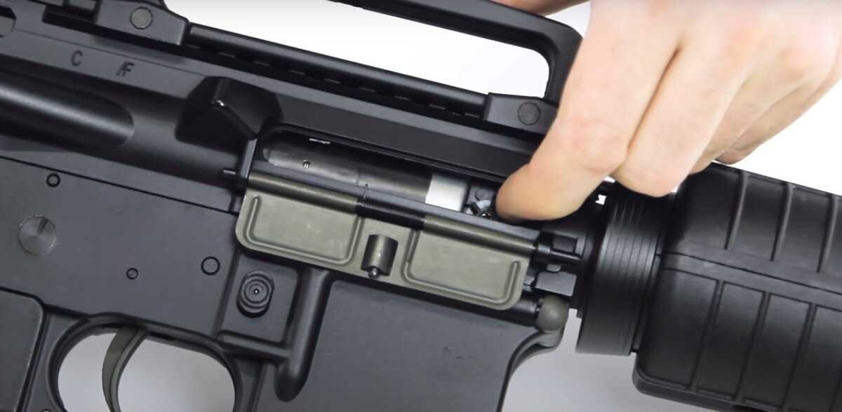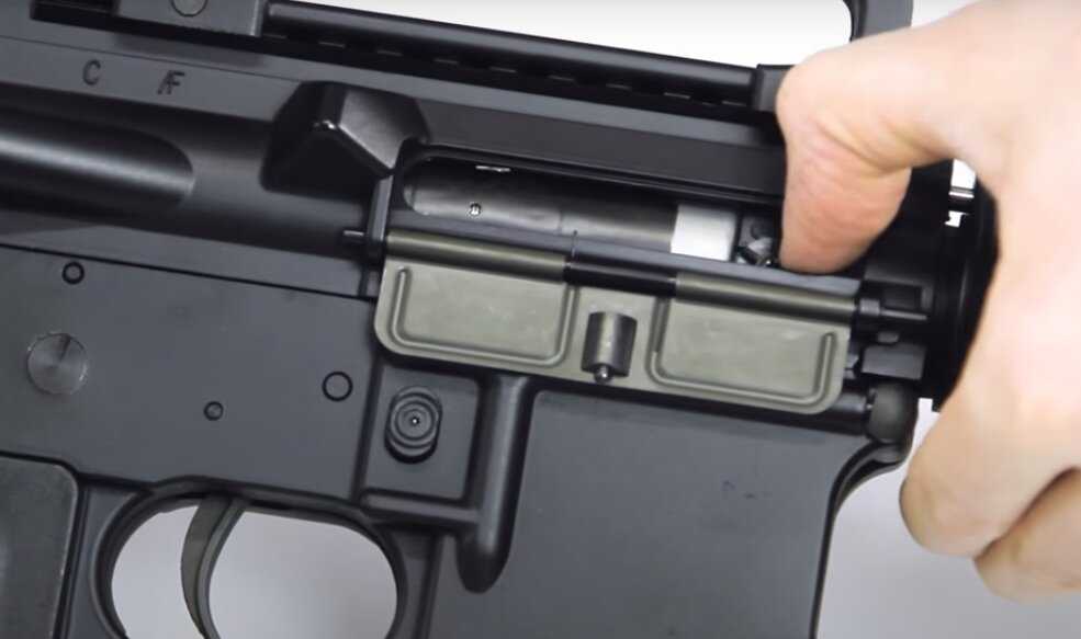 Когда регулировка закончена, нужно нажать кнопку сброса затворной задержки и закрыть шторку окна выброса гильз.
