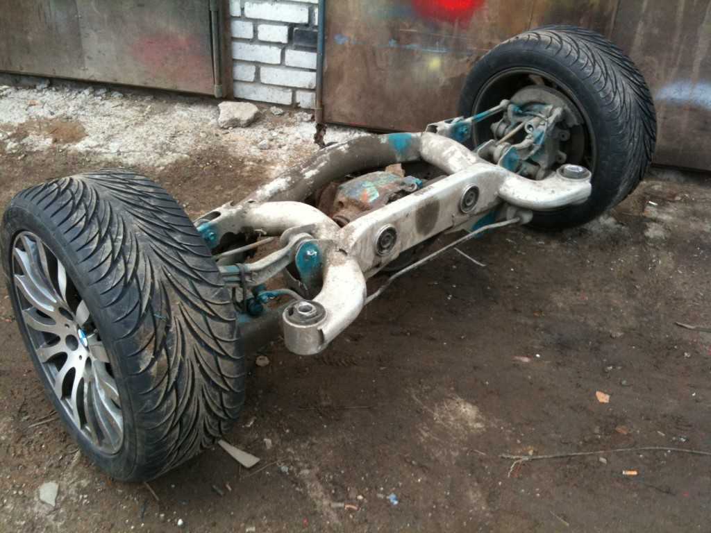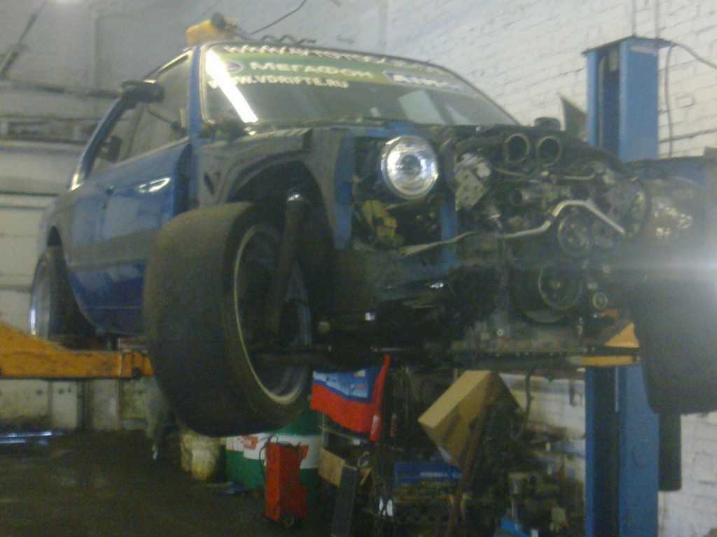 Так же параллельно мотору, доработке подвергался весь автомобиль. После установки мотора, одной из главных проблем стала поломка приводов, их ломало по несколько штук за гонку! Из-за этого было принято решение поставить заднюю балку в месте с приводами, редуктором и нижней частью кузова от BMW E39 540, после чего проблема приводов была решена. Помимо прочего были заменены задние верхние рычаги на регулируемые, спереди был установлен комплект для выворота от WISEFAB и винтовые стойки D2, а вот задние амортизаторы были заменены на передние стойки от Subaru Impreza STI.