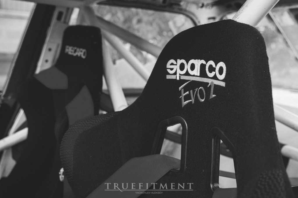 И конечно же, руль Sparco, сидения Sparco, ремни SABELT и тормозная система Wilwood на 315 мм.