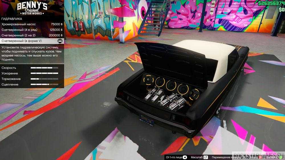 Одна из немногочисленных опций, эксклюзивная для лоурайдеров, которая повлияет на характеристики вашего авто. Всего имеется четыре модификации гидравлических насосов разной мощности, и чем они мощнее, тем выше вы сможете поднять свой кузов. И это уже не говоря о возможности прыгать выше, сильнее, быстрее на своём четырёхколесном друге.