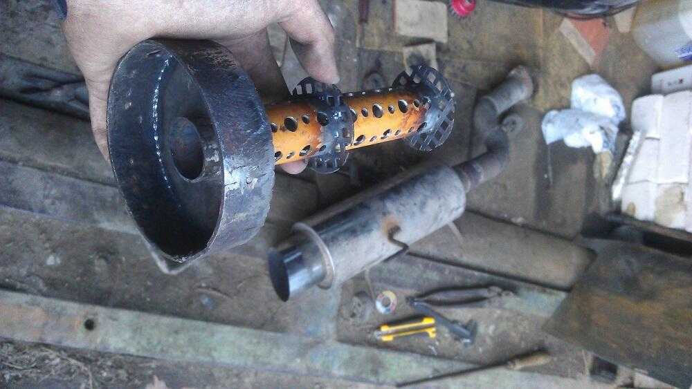 Старый глушитель еще понадобится. Вырежьте его корпус и вскройте, после чего уберите внутреннее наполнение. Именно оно мешает получить тот самый «рык» при езде на высокой скорости, так как выполняет изолирующую функцию.