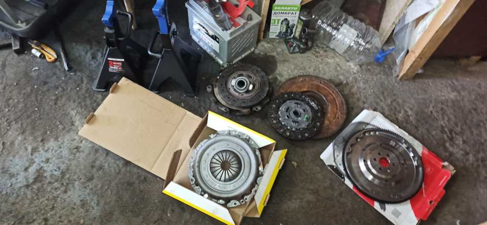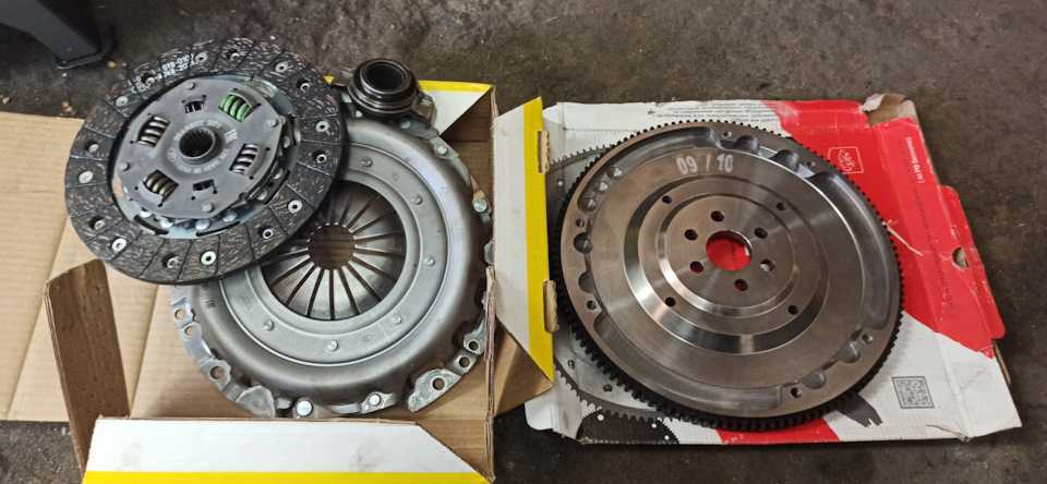 Поставил новый облегченный маховик, приороскую корзину с диском ну и саму коробку.