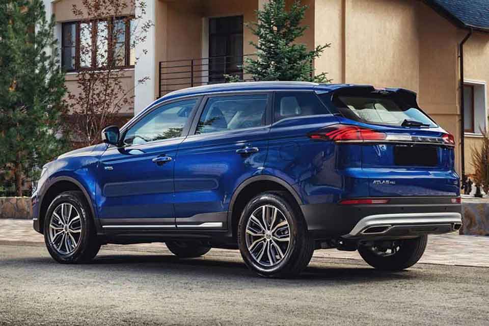 Что касается повторителей сигнала поворота, они устанавливаются на тыльной части зеркал и выше колесных арок передних колес. Украшается машина с помощью разнообразного рельефа на дверях и пластиковой отделкой на нижней части кузова. Такой материал есть на колесных арках. Высота клиренса в этом случае равняется лишь 163 миллиметра. Задняя часть Джили Атлас Про 2019 стала более агрессивной. Инженеры компании решили разместить бампер чуть выше, чем в «простой» версии.
