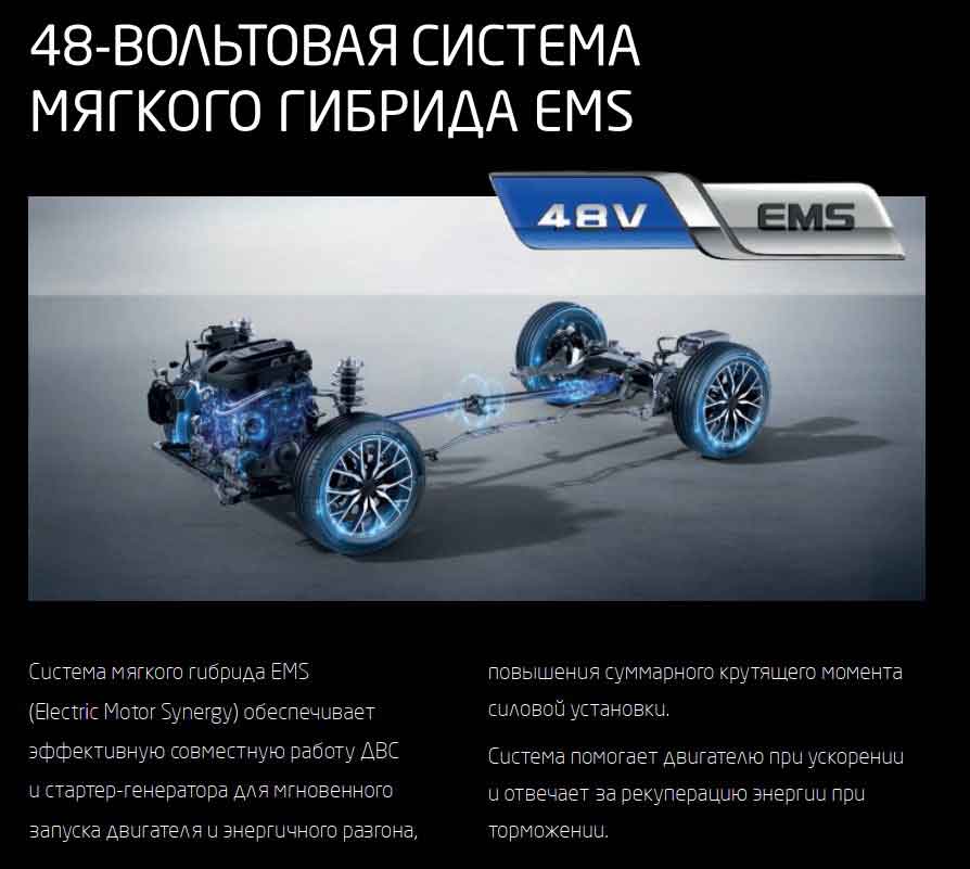 Расширяются функциональные возможности системы «Старт-Стоп», и, если бензиновый движок отключен, все потребители энергии питаются от батареи 48V.