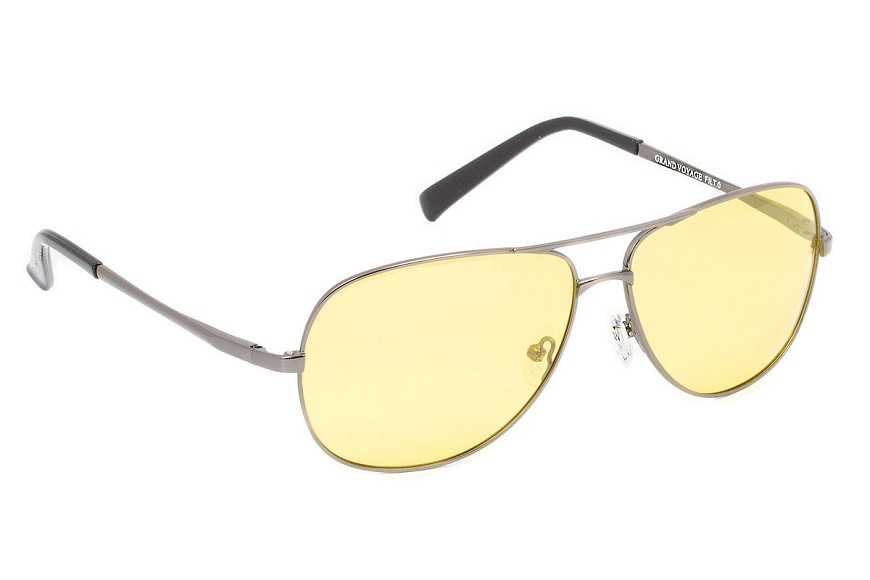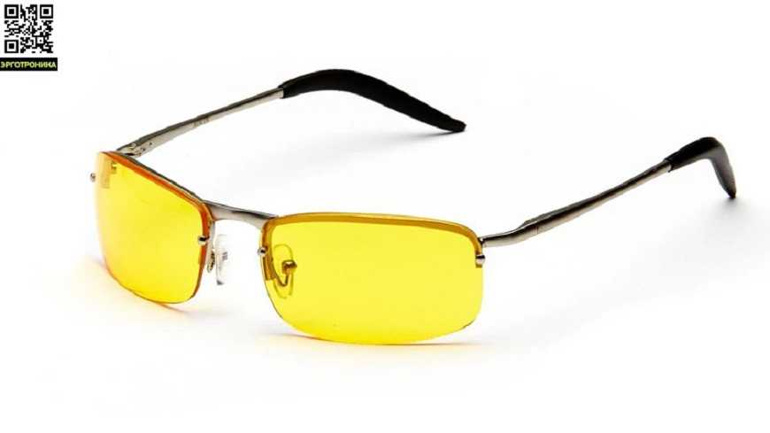 Популярный вариант с овальными линзами, выполненными в 2 оттенках: жёлтом и синем. Оправа серебристого цвета из металла тонкая и не снижает угол обзора за рулём. Ободковая конструкция удобна и не сдавливает голову даже при длительном ношении.