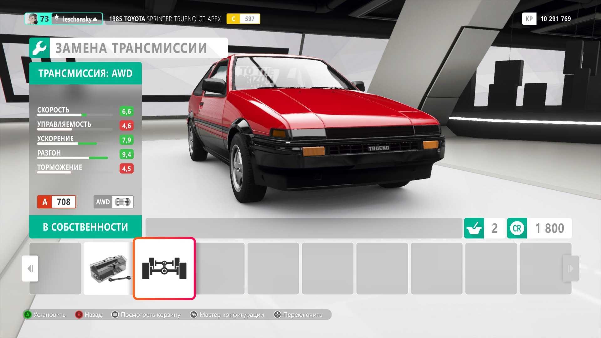 Теперь заходим в “Трансмиссия” и действуем по тому же сценарию, закупаем все самое лучшее.