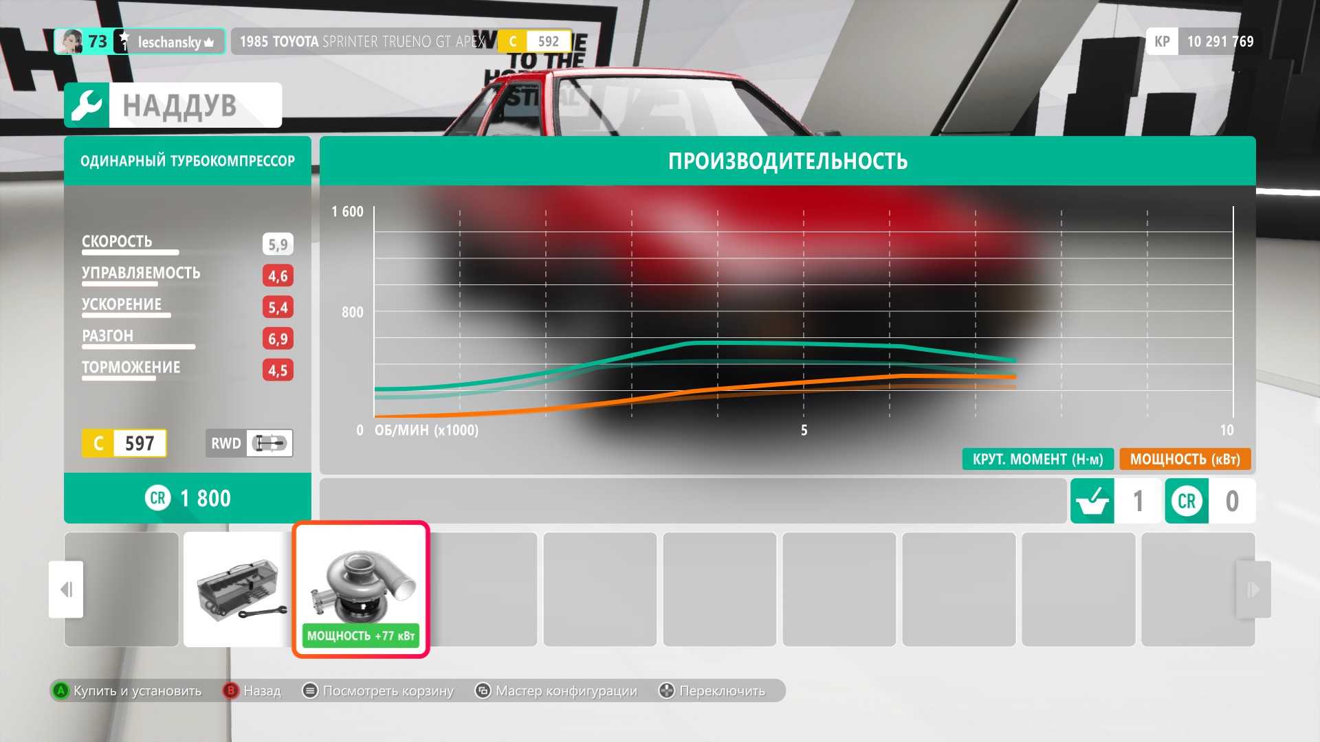 Преобразование чем-то напоминает автоматический тюнинг, только в этом случае вы можете выбирать доступные элементы самостоятельно. К таким элементам относятся двигатель, трансмиссия, наддув и готовый тюнинг-пакет.
