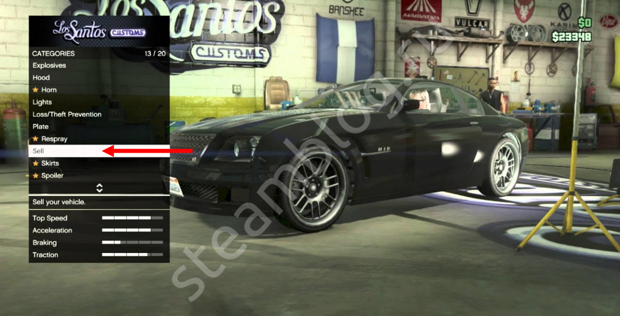 Это способ получить дополнительные деньги. Достаточно приехать на данной машине в одну из мастерских Los Santos Customs и выбрать подходящий вариант. Учтите, что таким способом нельзя продать полицейскую машину, скорую помощь или другой служебный автомобиль.