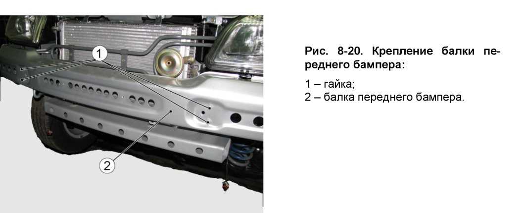 Отверните две гайки 1 (рис. 8-13) нижнего крепления бампера.