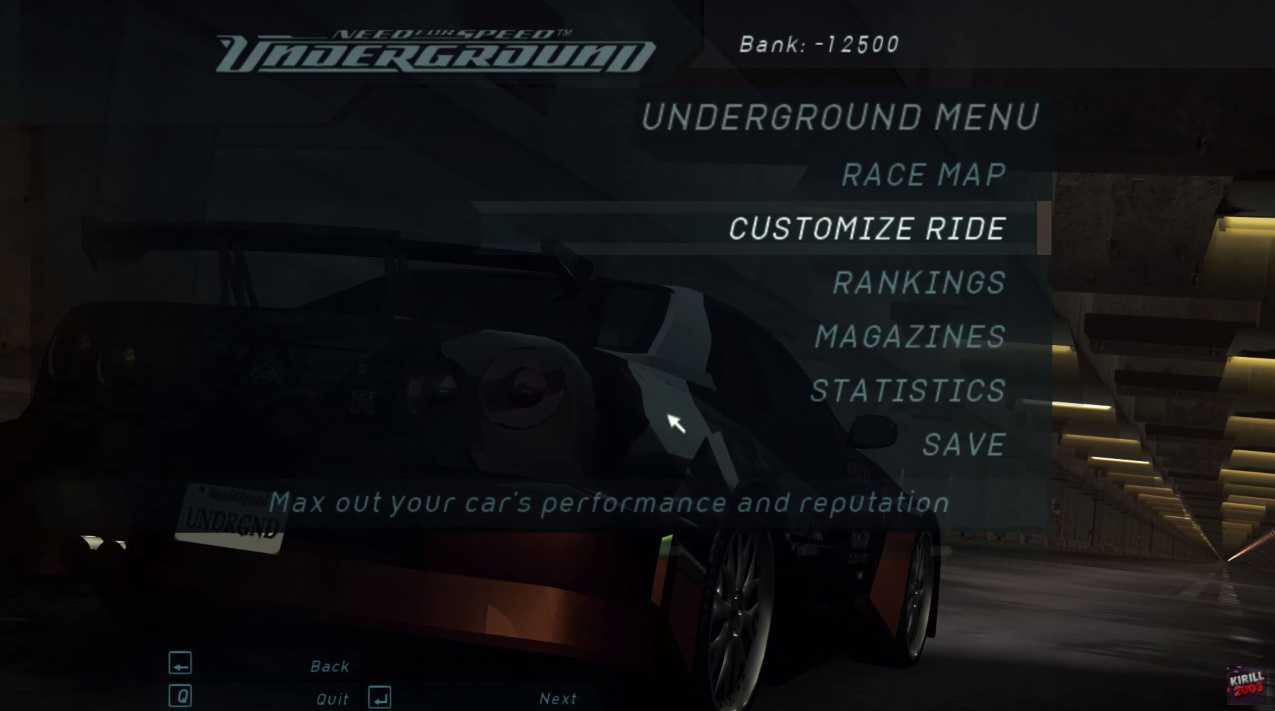 В режиме Underground все улучшения производительности и большинство визуальных улучшений (за исключением рисунка на машине, цвета, наклеек) имеют цену. В режиме Быстрой гонки любые улучшения производятся бесплатно.