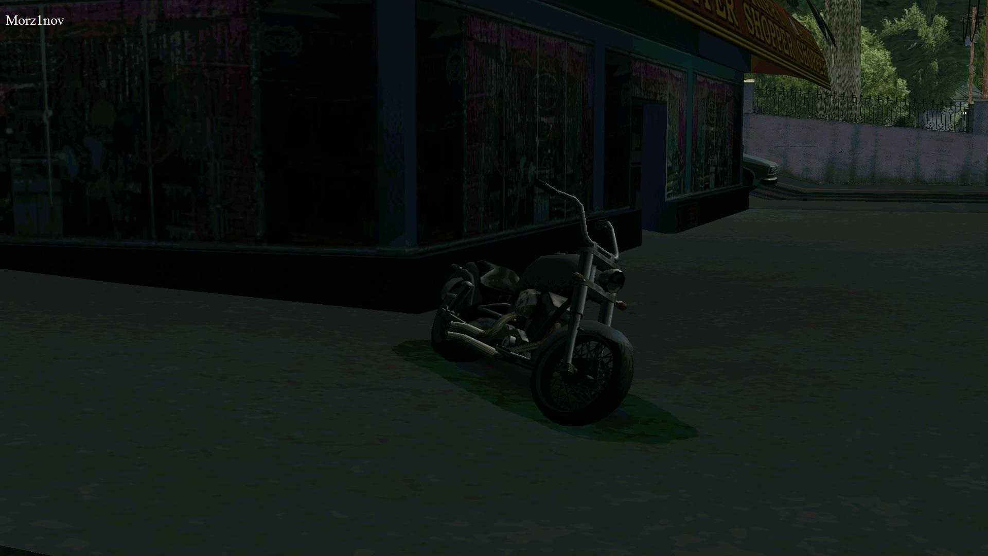 «Фривэй» (Freeway). «Чоппер», он же «Харлей», он же «Свинтус». Один из самых узнаваемых в мире. Выглядит стильно (особенно если заехать на нем в провинциальный городок и врубить «Кей-Роуз»). Но на роль средства передвижения годится с трудом. Все потому, что на высоких скоростях он практически неуправляем. А передвигаться по штату тишком — такого счастья нам не надо. Единственный плюс «Фривэя» — он удобен для езды на заднем колесе. Раздобыть «Фривэй» очень просто — достаточно выехать за город, чтобы наткнуться на байкеров. Но если вам нужен мотоцикл со стоянки, попробуйте проверить местность к северу от карьера (район Лас-Вентурас).