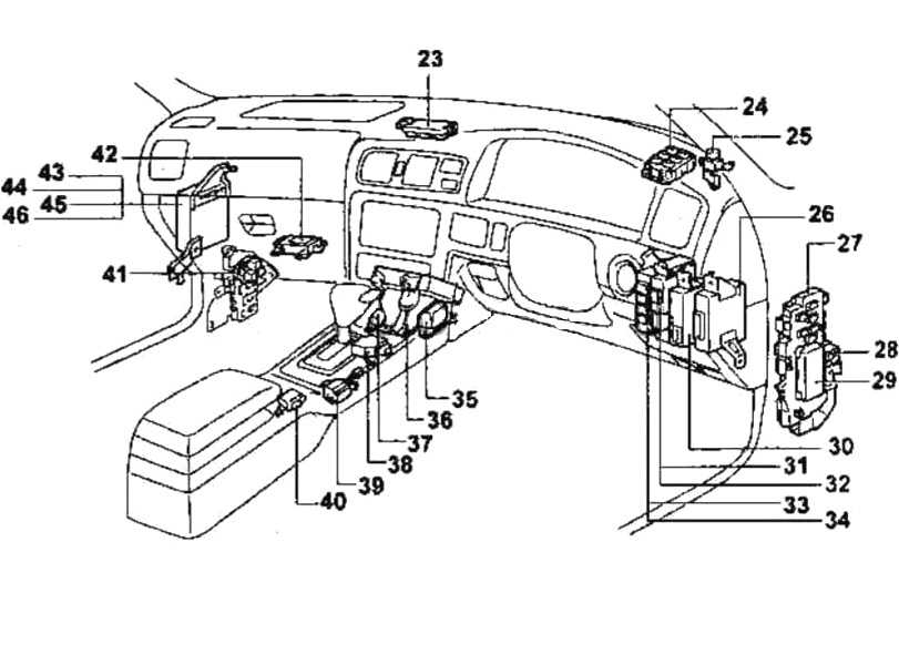 | 19 | 10A ECU-B – Кондиционер и отопитель, «круиз-контроль», задние противотуманные фары, система дистанционного управления замками дверей и крышки багажника |