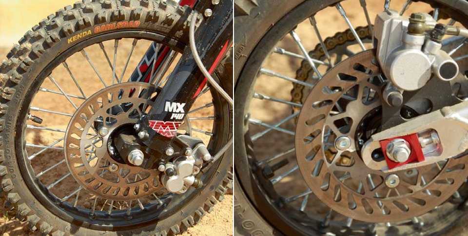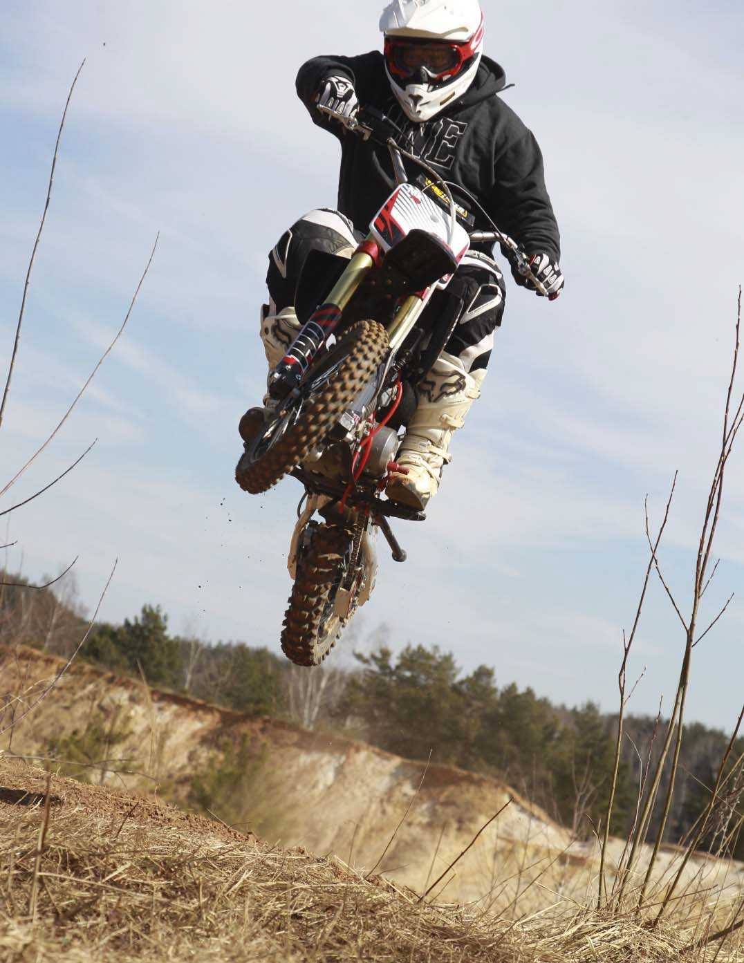 На приземлении «стоковые» подвески 140 MX под моим тщедушным 100-килограммовым весом срабатывали практически до «отбоя», но никаких механических поломок при этом, к моему безмерному удивлению, не происходило. Но тут нужно помнить вот какой момент: для того что бы «заточить» питбайк под определенные, нужные только вам условия, достаточно просто поменять деталь или узел, который по каким-либо причинам вас не устраивает, в сборе.