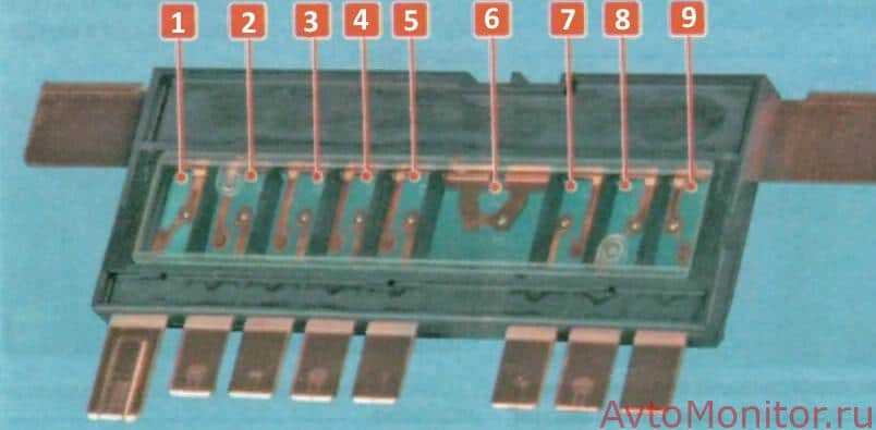Он закреплен на передней стенке подкапотного монтажного блока и содержит 9 плавких вставок.