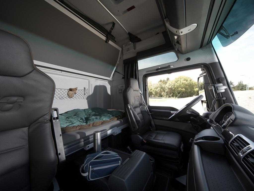 Клиентам компании доступно 8 видов кабин и 3000 вариантов расцветки. В салоне тоже есть изменения — он стал комфортнее. В распоряжении водителя более 1100 литров в отсеках для хранения вещей, управление системами освещения и отопления, окнами и замками прямо со спального места, а также многозонный матрас из «холодной пены».