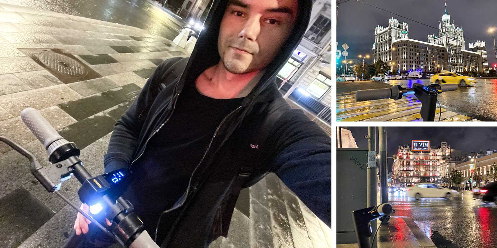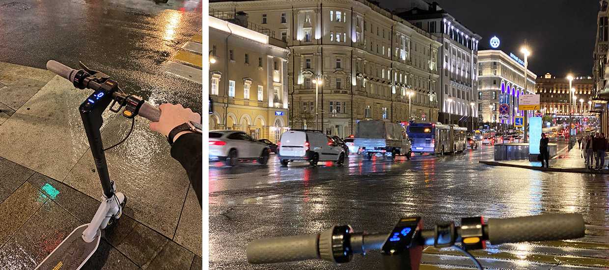 В начале сентября шли недели почти ежедневных дождей, и владельцы обычных электросамокатов пересаживались обратно в авто или выдвигались пешком. Тем временем в первый же дождливый вечер я впервые достал MAX G30LP, оттолкнулся и погнал в Москву прямо в ливень. Было интересно, утоплю ли.