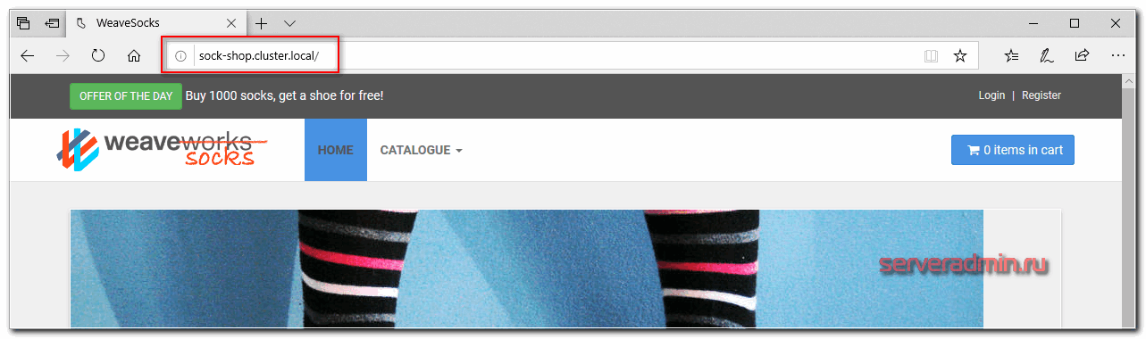 Магазин настроен на работе в отдельном namespace — sock-shop. Его предварительно надо создать.
