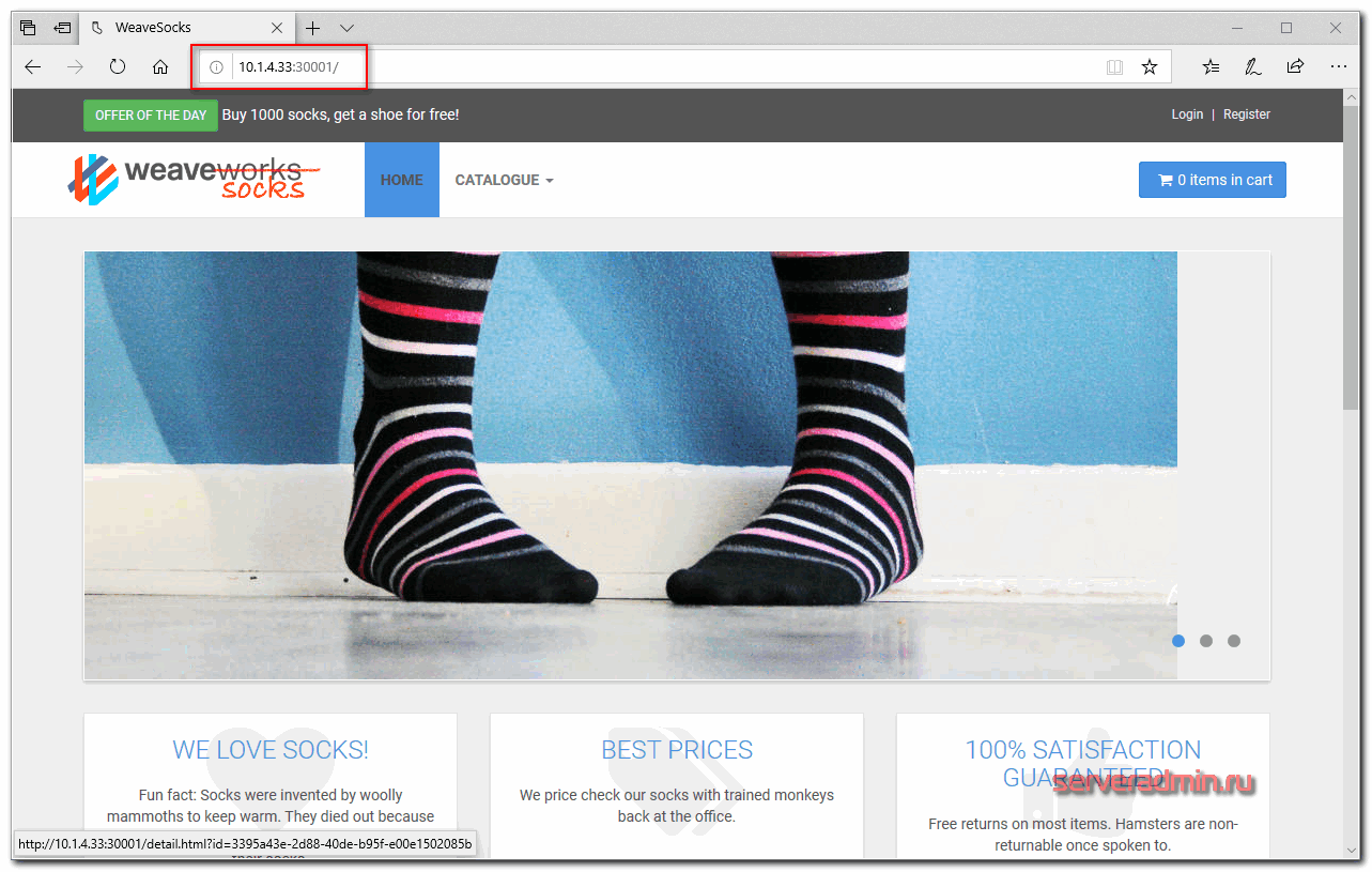 Ее ip адрес — 10.1.4.33. Значит для проверки магазина надо идти по урлу http://10.1.4.33:30001/