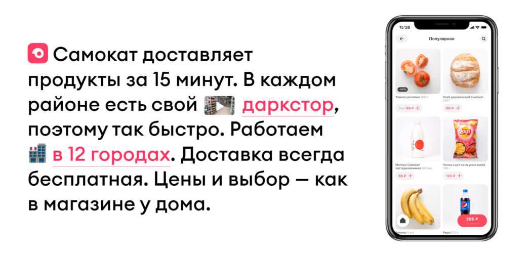 Курьеры сервиса доставляют заказы в течение получаса. Этого удается достичь благодаря широкой сети дарксторов в разных точках города. Принцип работы в данном случае довольно прост. Вы делаете заказ через приложение, после чего курьер доставляет вам продукты из ближайшего к вам даркстора.