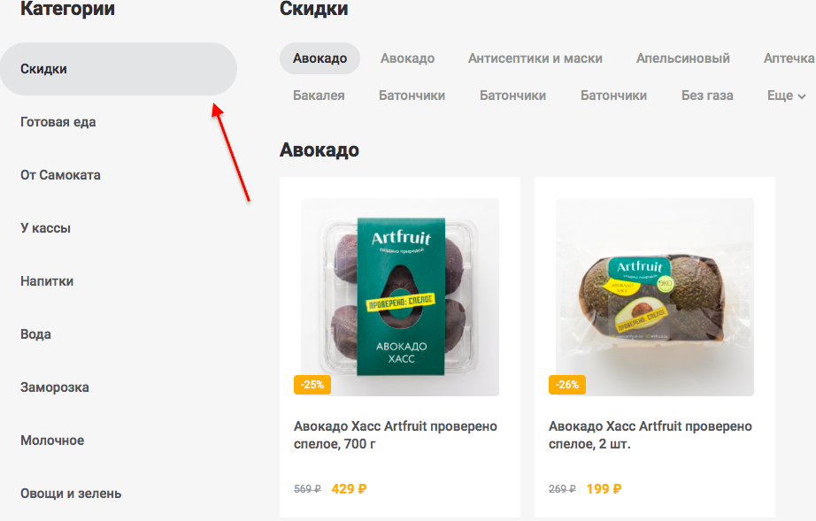 Также на странице со скидками вы можете выбрать категорию товаров для более удобного поиска нужных позиций в распродаже.