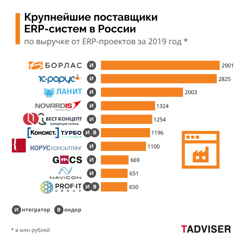 Включение в рейтинг крупнейших поставщиков ERP-систем в России