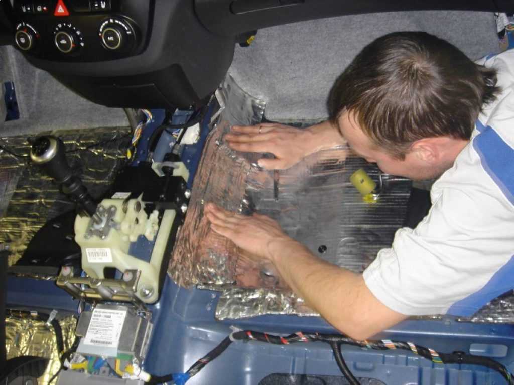 Невзирая на то, какие именно материалы выбраны владельцем автомобиля, важно соблюсти определенный порядок выполнения работ. Сначала фиксируется вибропоглотитель дверей или другой части кузова, затем наносится шумопоглощающий материал, а уже в последнюю очередь клеится теплоизолятор, если в нем есть необходимость