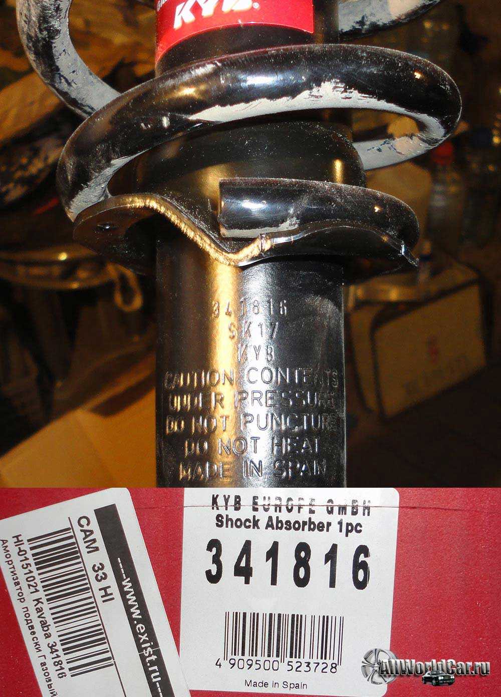 Амортизаторы KYB 341816 произведены в Испании Made in Spain. Пока выбирал что себе поставить узнал как определит подделку KYB, и о том, что одна номенклатура амортизаторов производиться только на одном заводе. То есть амортизаторы Kayaba 341816 производятся только на заводе в Испании, если на амортизаторе будет написано производство в другом месте, то это подделка, хотя на подделках обычно не пишется место производства и название амортизатора будет только на наклейках. Выбиты на стойке на подделке обычно только номенклатура. Ну и соответственно на оригинальных стойках KYB, все сварные швы аккуратные, название выбито на стойке. В общем оригинал на фото выше.