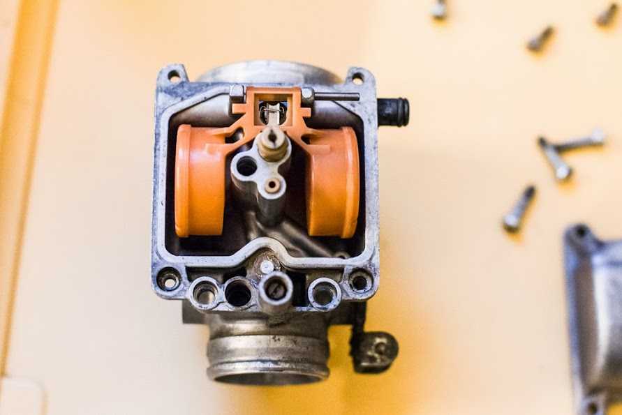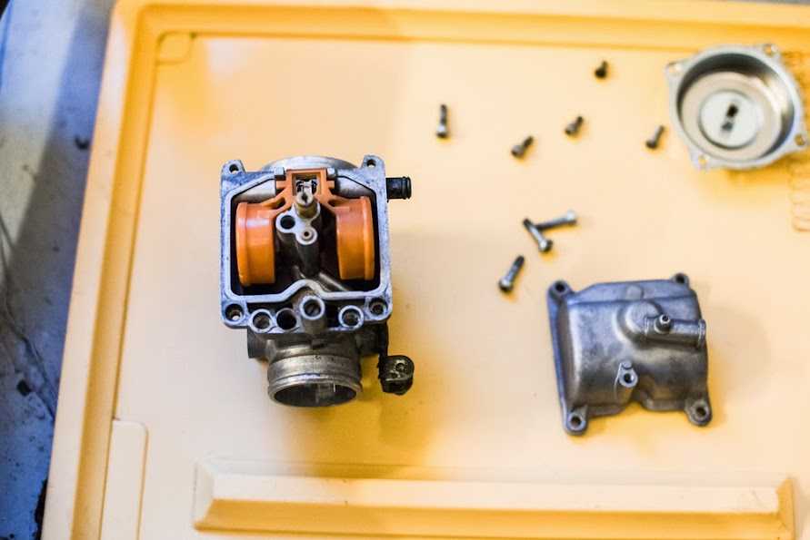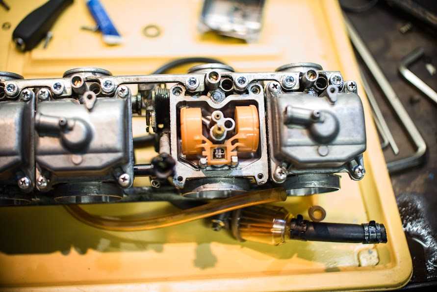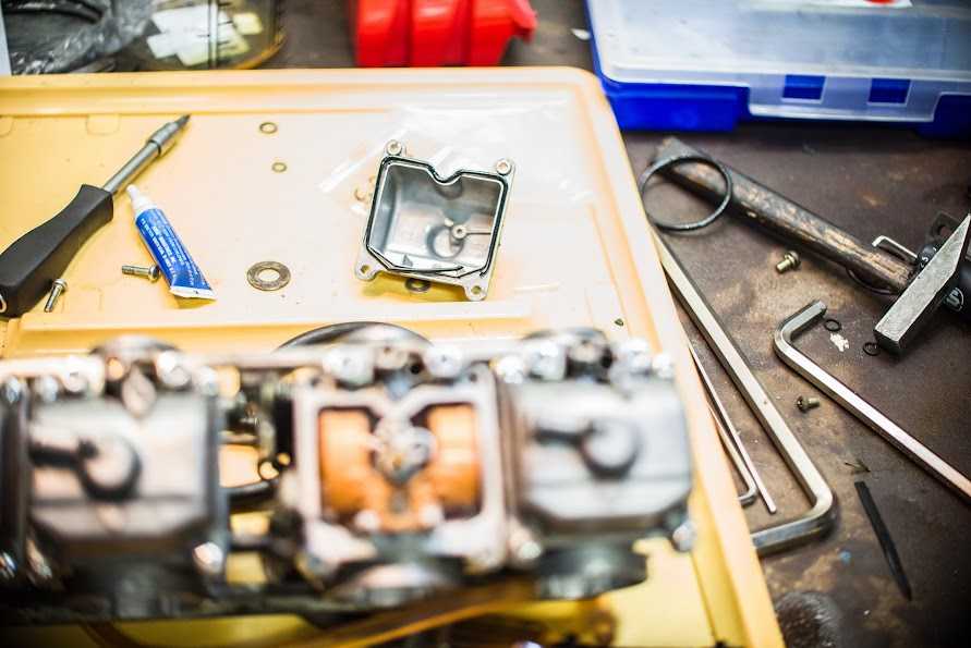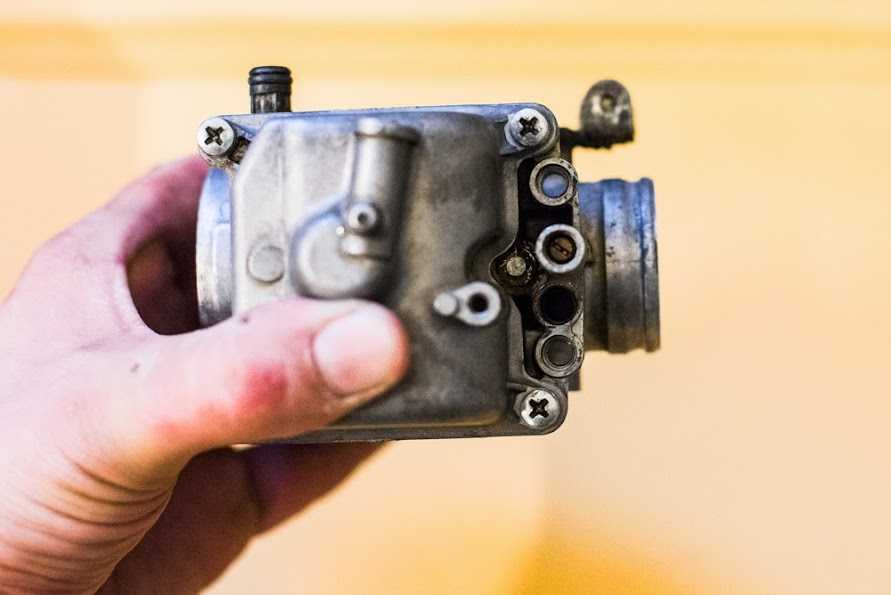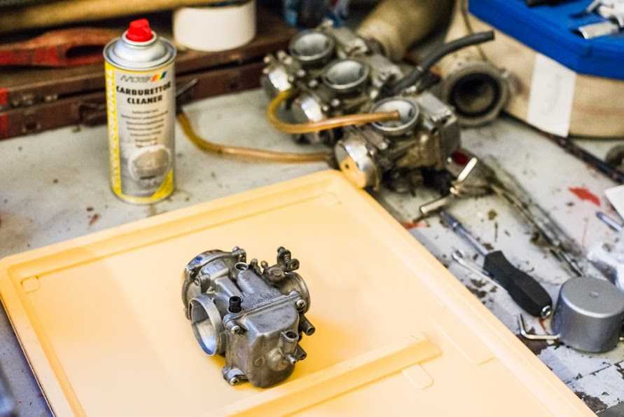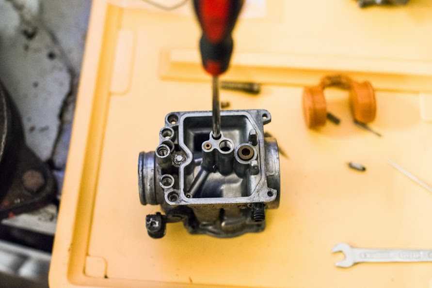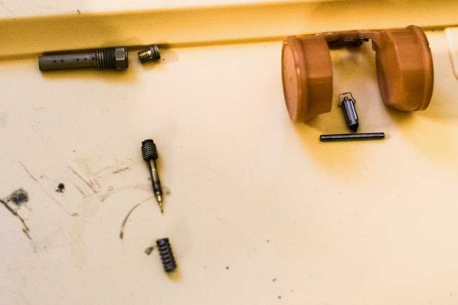 Ну вот четыре грязнули у нас в руках… и с какой стороны к ним подойти в первую очередь? правильно — отмыть =) чем и как? я для этих нужд использовал омыватель цепи для сложных мест, и очиститель тормозных дисков для всего остального, им же я и карбы продувал по началу, окончательно продувал спец средством для карбов. Взял я этот сложный механизм домой, думал сейчас с пивком быстренько их переберу… дома быстренько чухнул — бензом то воняет, дети спят в соседних комнатх… а главной причиной отложить работу в сторону стал тот факт, что рукожоп из германии, который их трогал последним, по слизывал нах половину шляпок винтиков шурупчиков… Таки пришлось тащить карбы на службу и там уже аккуратно флексом делать прорези под простую минусовую отвёртку. открутил. потом за купился болтиками под шестигранник и поменял все, даже живые.