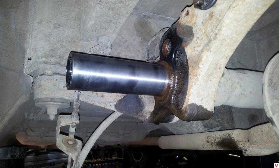 А, еще забыл — перед тем как выбивать подшипники, нужно вытащить стабилизатор, он находится внутри балки, вынуть его легко. Стоит он на шлицах и держится 2-мя металлическими крышечками. Чтобы их снять, нужно открутить винт крепления (обычный болт на 13) и, вставив в неё подходящий болт, вкручивать до упора. Когда болт упрется в стабилизатор он начнёт выдавливать крышку — и тем самым освободится.