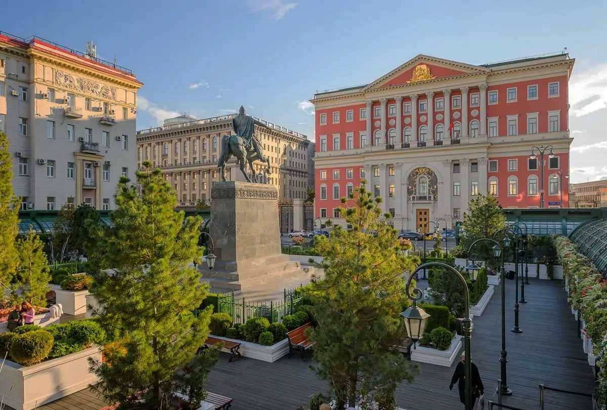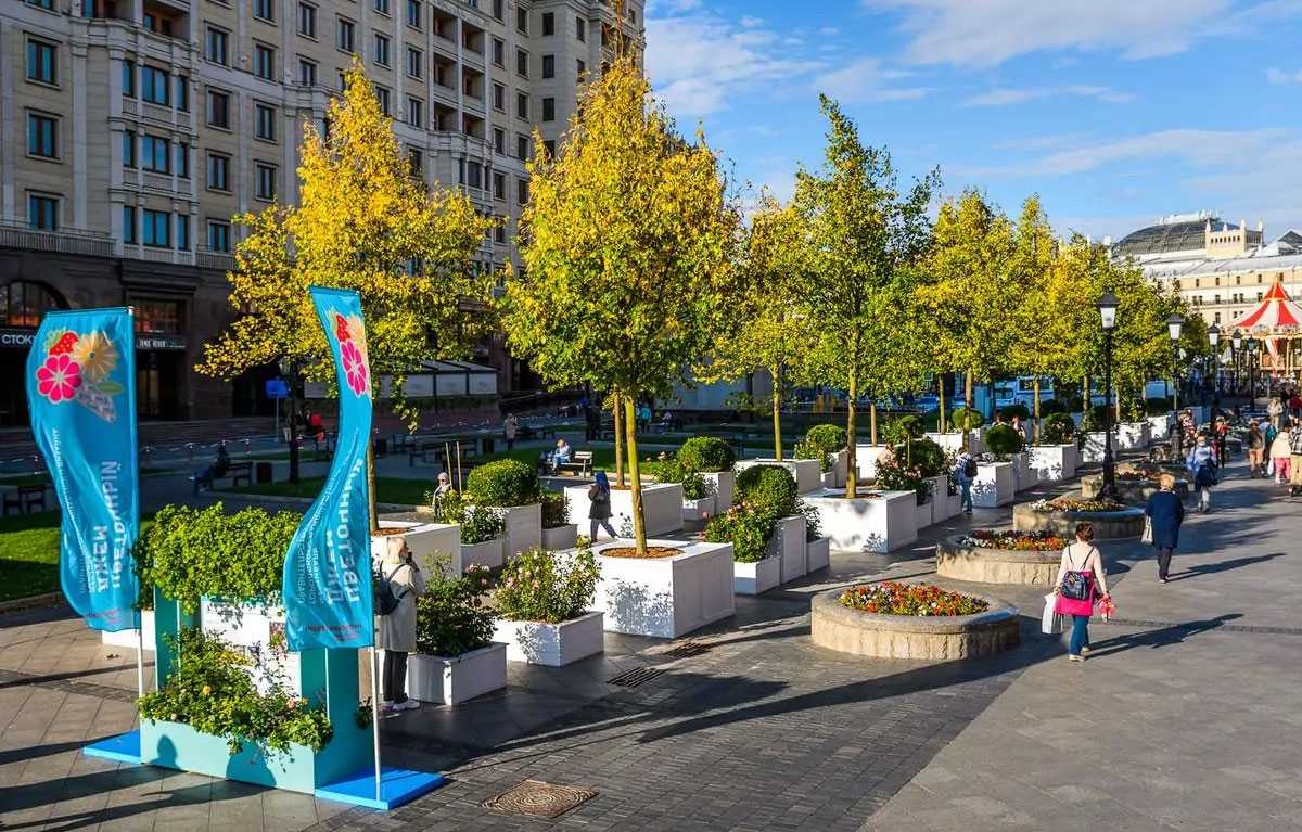Помимо растительности, традиционно, на Тверской площади функционируют павильоны, в которых вы можете приобрести различные продукты питания, покушать в кафе разные необычные блюда и в целом с пользой провести время.
