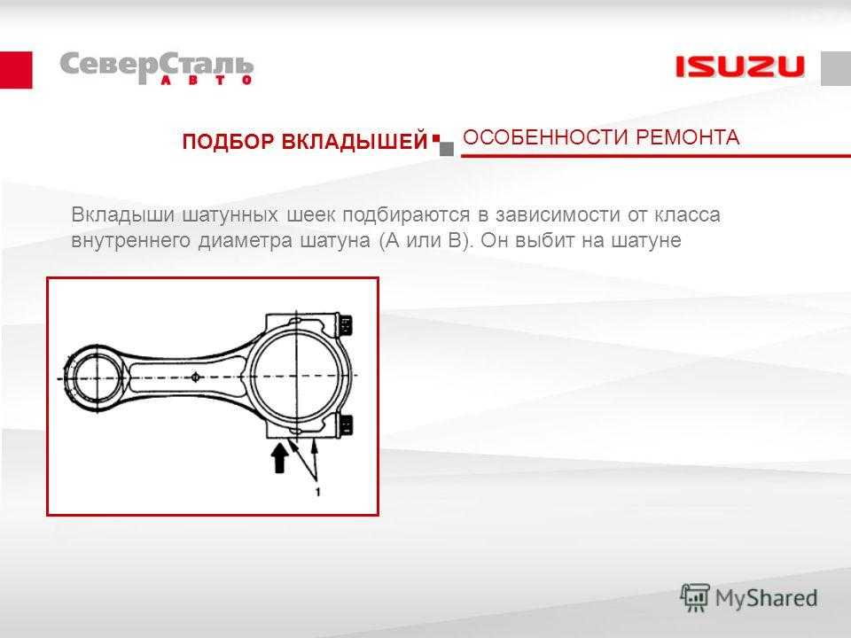 ПОДБОР ВКЛАДЫШЕЙ Вкладыши шатунных шеек подбираются в зависимости от класса внутреннего диаметра шатуна (А или В). Он выбит на шатуне ОСОБЕННОСТИ РЕМОНТА