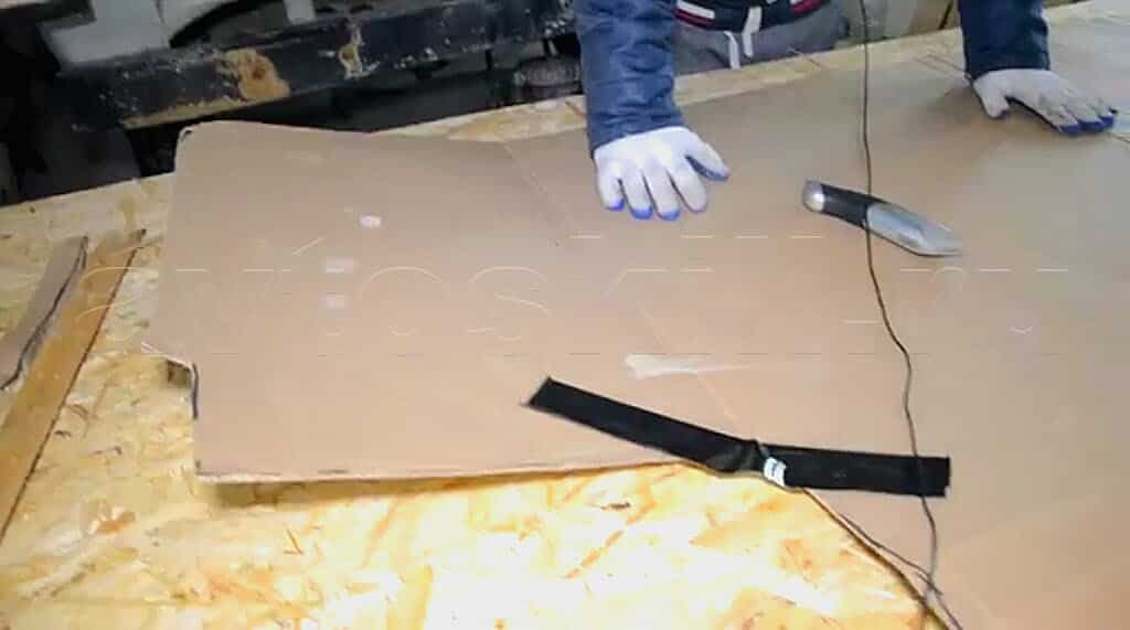 Учитывая размер утепляемых секций, вырезают заготовки из картона. Картонные фрагменты кладут поверх материала и обводят их границы, детали вырезают. Металлические поверхности промывают с мылом и просушивают. Затем металл обезжиривают растворителем. Утеплитель прижимают к поверхности и аккуратно приглаживают.