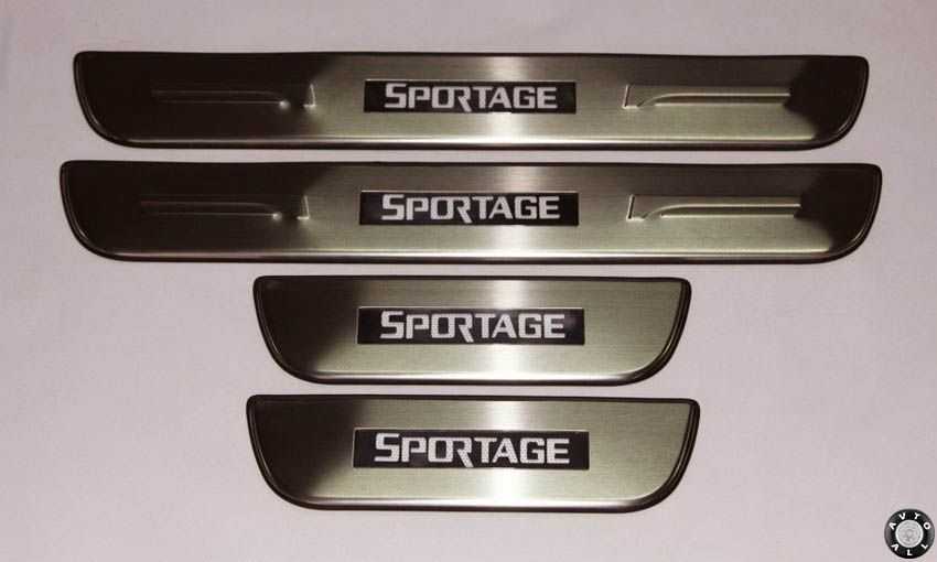 Также, некоторые владельцы Киа Спортейдж 3 для придания оригинальности устанавливают металлические накладки, иногда они бывают даже с подсветкой.