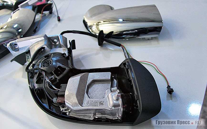Предвижу вопрос, касающийся ресурса и работоспособности MirrorCam в зимний период, при интенсивных осадках и загрязнении. Внешние полости, где спрятаны камеры, расположены высоко, их форма аэродинамически проработана так, чтобы препятствовать загрязнению. Предусмотрен и подогрев, чтобы избежать запотевания или обледенения камер. Однако честные и порядочные немецкие конструкторы, когда демонстрировали на столе снятые с машины отдельные компоненты MirrorCam, внимательно фиксировали обнаруженные нами замечания. Мне показалось, что пучок электропроводки от камеры недостаточно защищён, а аэродинамический корпус в месте стыка, где установлен объектив, требует герметичного уплотнения. Мерседесовцы отметили, что в рамках этой серии тестовых заездов много аналогичных вопросов поступило от представителей северных стран и Восточной Европы.
