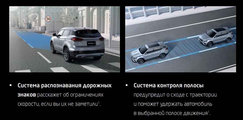 - удержания в полосе движения (LKA) и предупреждения о покидании полосы (LDW);