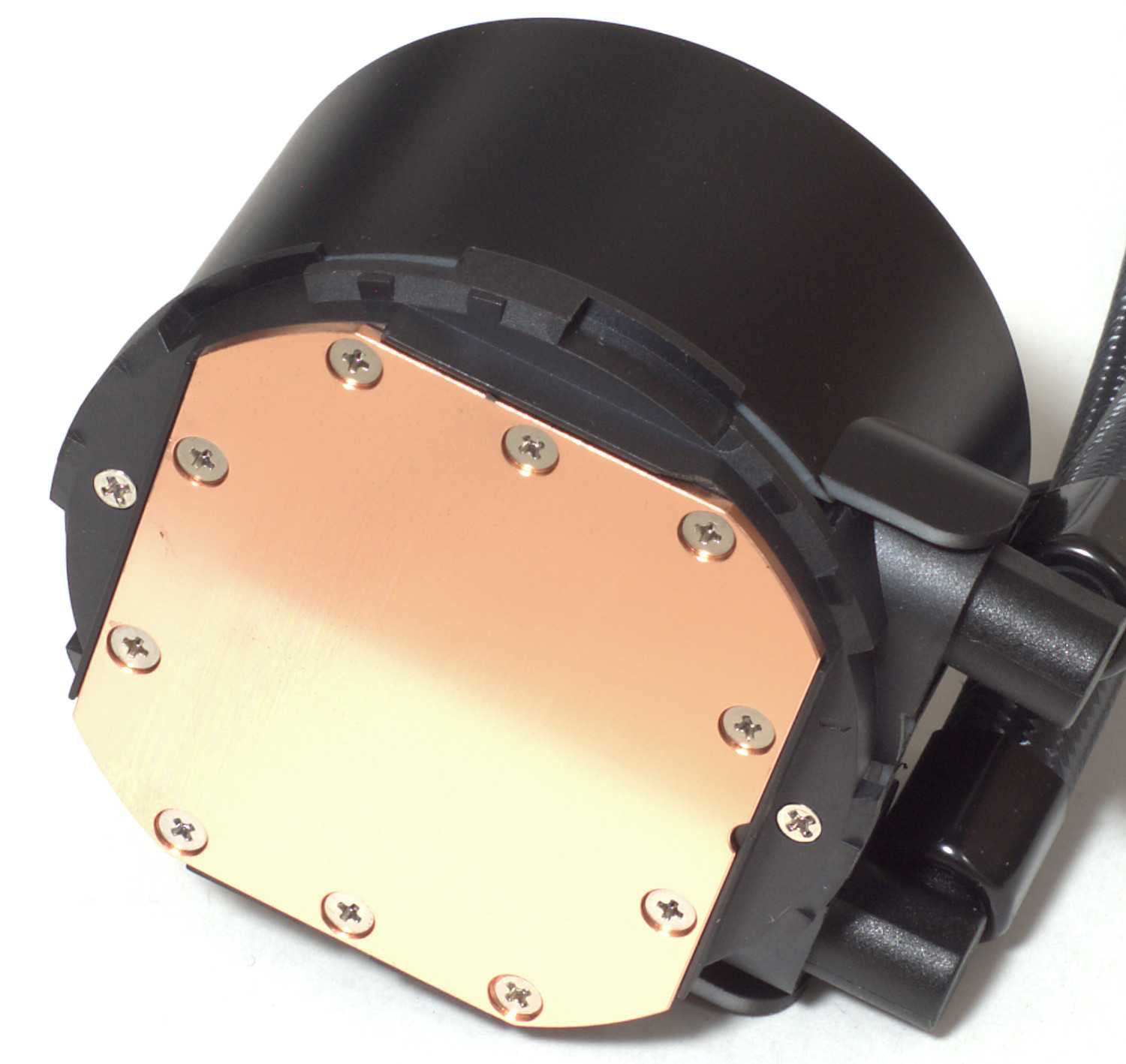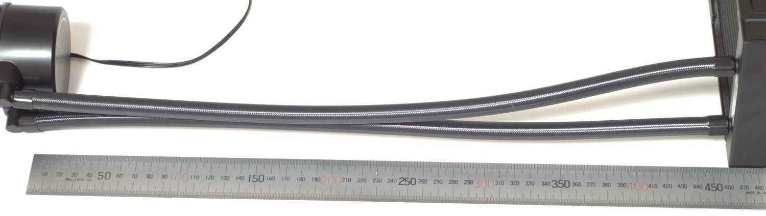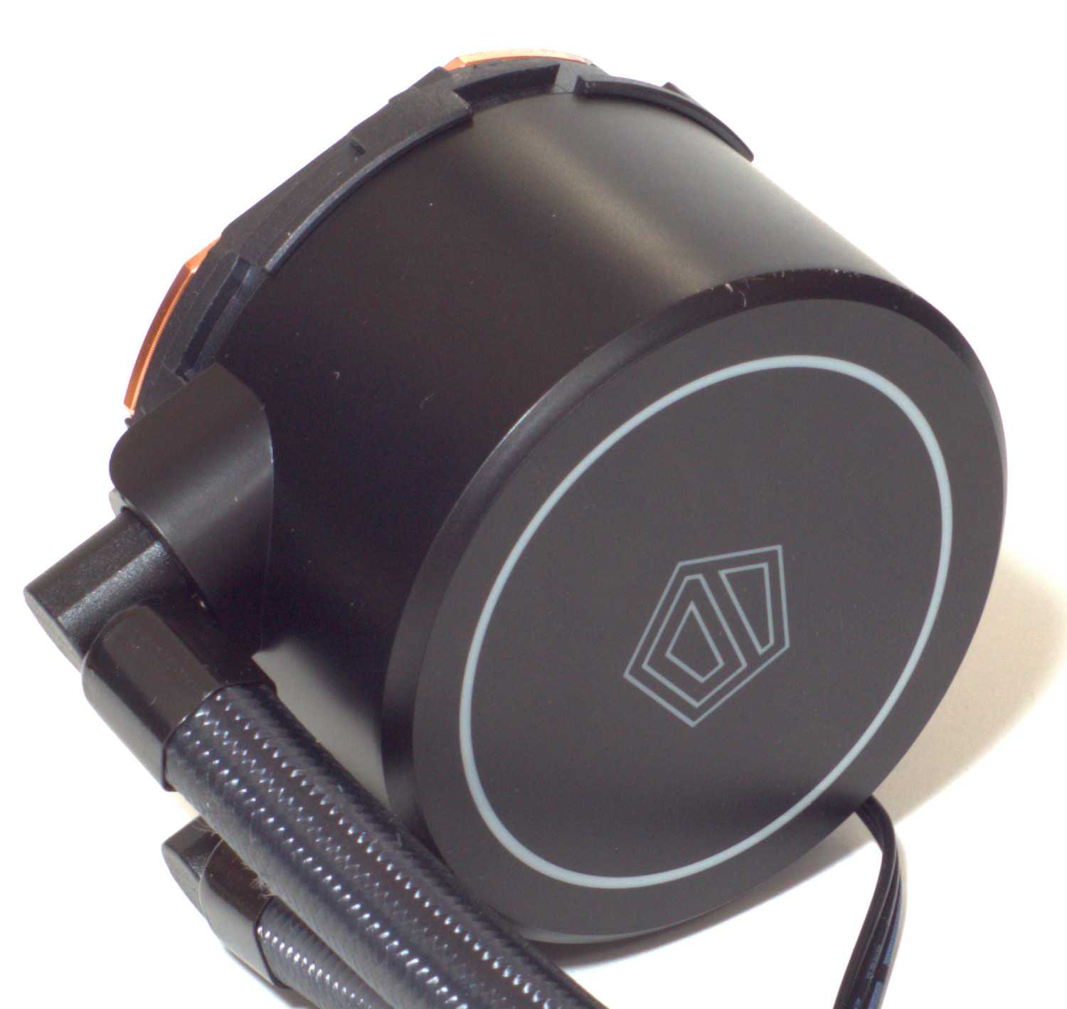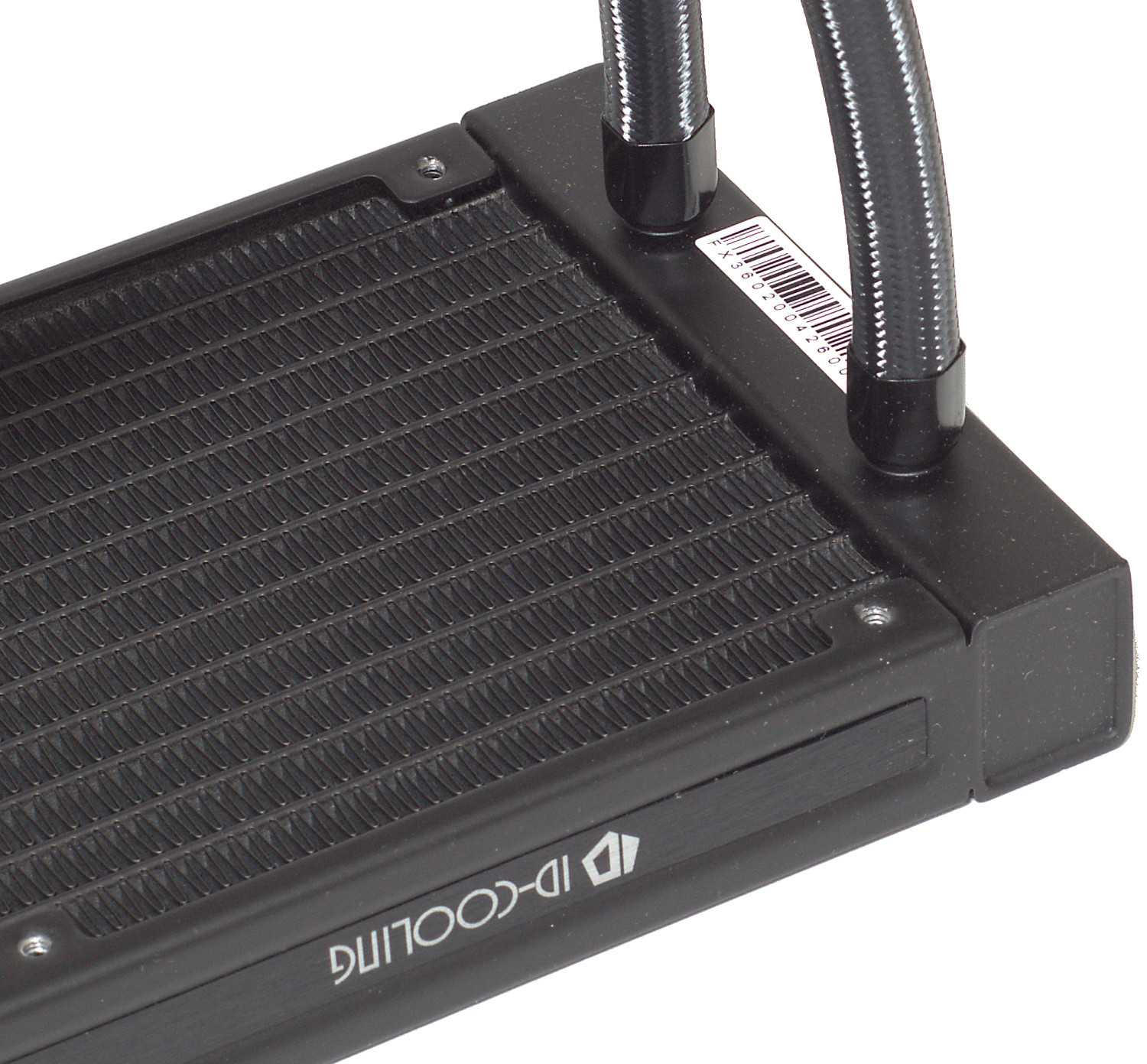 Трудно ожидать инновационных решений для бюджетной СЖО, поэтому радиатор «классический» – плоские каналы с размещенной между ними «гребенкой» из алюминиевых пластин. Никаких стандартных фитингов, которые, например, можно увидеть в модели ID-Cooling DASHFLOW 360, тут мы не увидим. Шланги отпрессованы. Все это говорит о бюджетном решении, но в плане качества придраться тяжело.