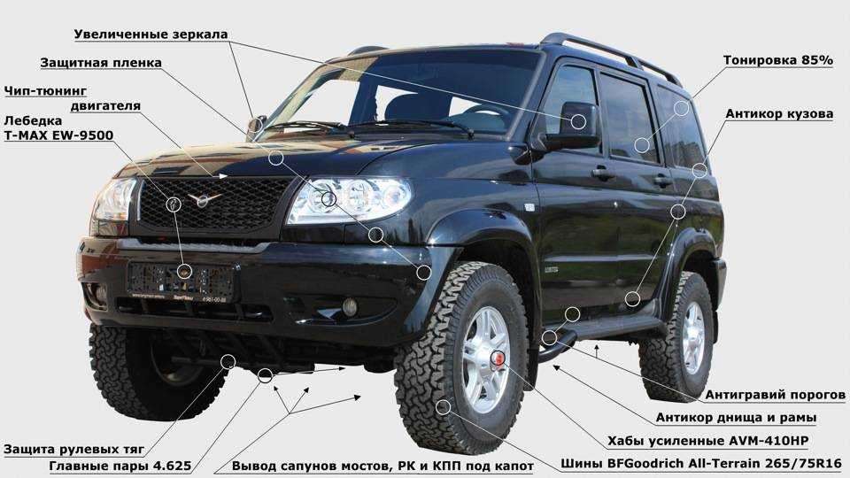Доработка мотора УАЗ Патриот заключается в установки системы отключения вентилятора. Для этого потребуется вывести соответствующую кнопку на панель приборов. Вентилятор рекомендуется отключать при езде по болотистой местности. Если часто приходится преодолевать водные преграды, сапуны трансмиссии понадобится установить высоко.