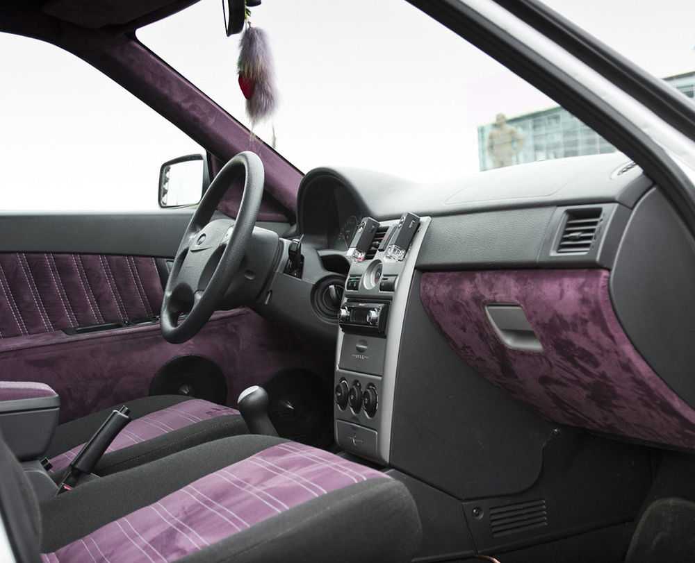 Алькантара представляет собой нетканую ультрамикрофибру. Она изготавливается из супертонкого полиэстрового волокна, которое покрывается полиуретаном. С её помощью можно полностью изменить вид салона простой Лады или хэтчбека Приоры. Тюнинг этим материалом проводить достаточно просто, и все доработки можно сделать своими руками. Алькантара напоминает замшу, и её так часто и называют — искусственная замша. Материал удобен для тюнинга салона Лады Приоры, так как он является самоклеящимся.