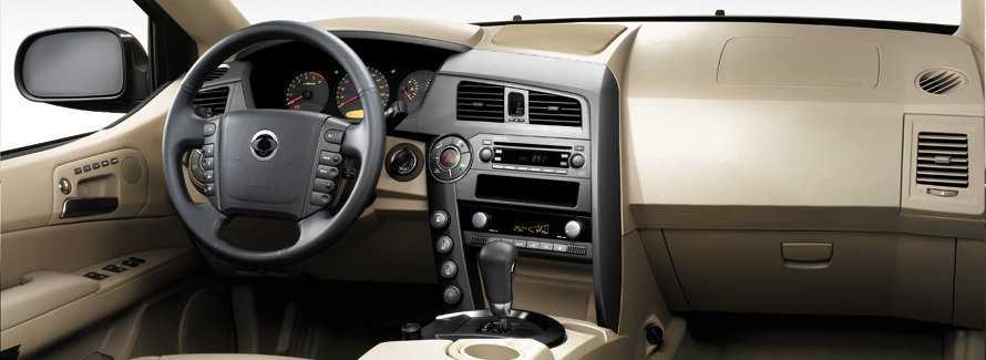 Наиболее оригинальным элементом интерьера Kyron является наклонённая к водителю центральная консоль, содержащая несколько переключателей круглой формы.