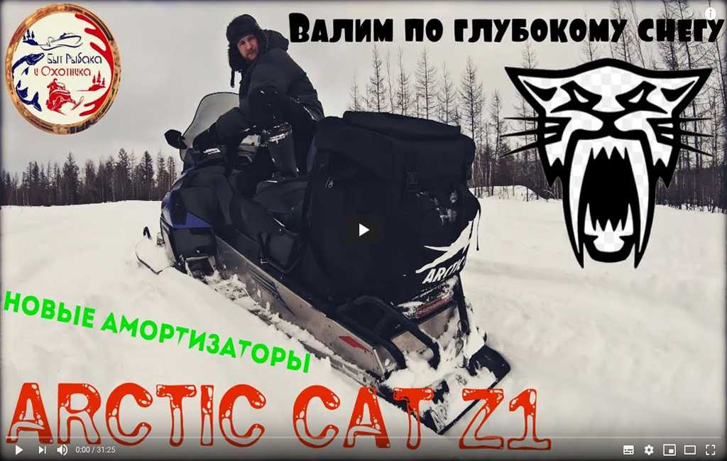 Ролик об установке усиленных амортизаторов ARCTIC CAT Z1. Испытаниях в реальных условиях глубокого снега, а также особенностя управления тяжёлым утилитарным снегоходом.
