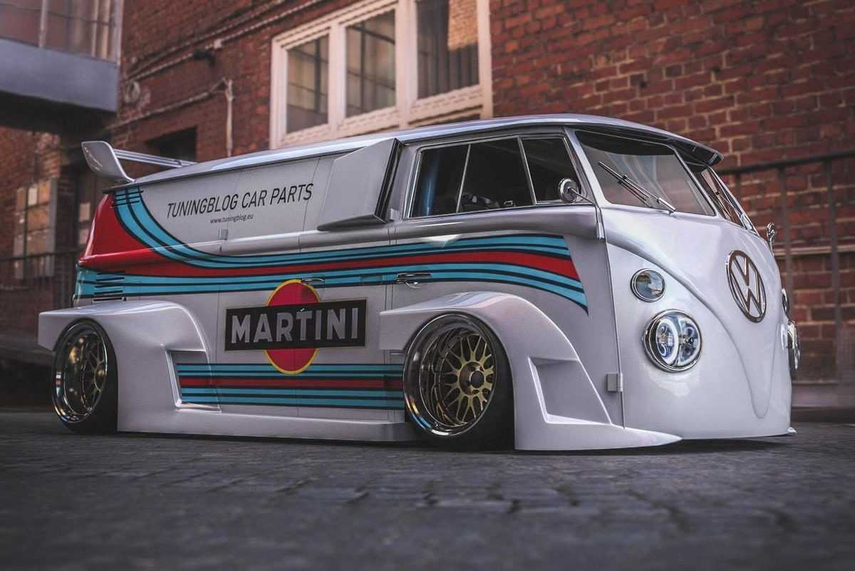Our virtual W1-T12 is impressively rounded off with a few small details such as the new LED daytime running lights in the typical T1 style, a welded roll cage or the discreetly darkened turn signals at the front. By the way, our core idea was to build a vehicle that we could use if we operated an on-site workshop with tuning parts. Therefore also the «Tuning blog Car Parts“Lettering on the sides. And that’s why our T1 even built in a side door for the loading area. Due to the huge engine, the transport of larger objects will probably be hopeless. How do you like our T1 bus? Have fun looking at the pictures and the video and stay true to us!