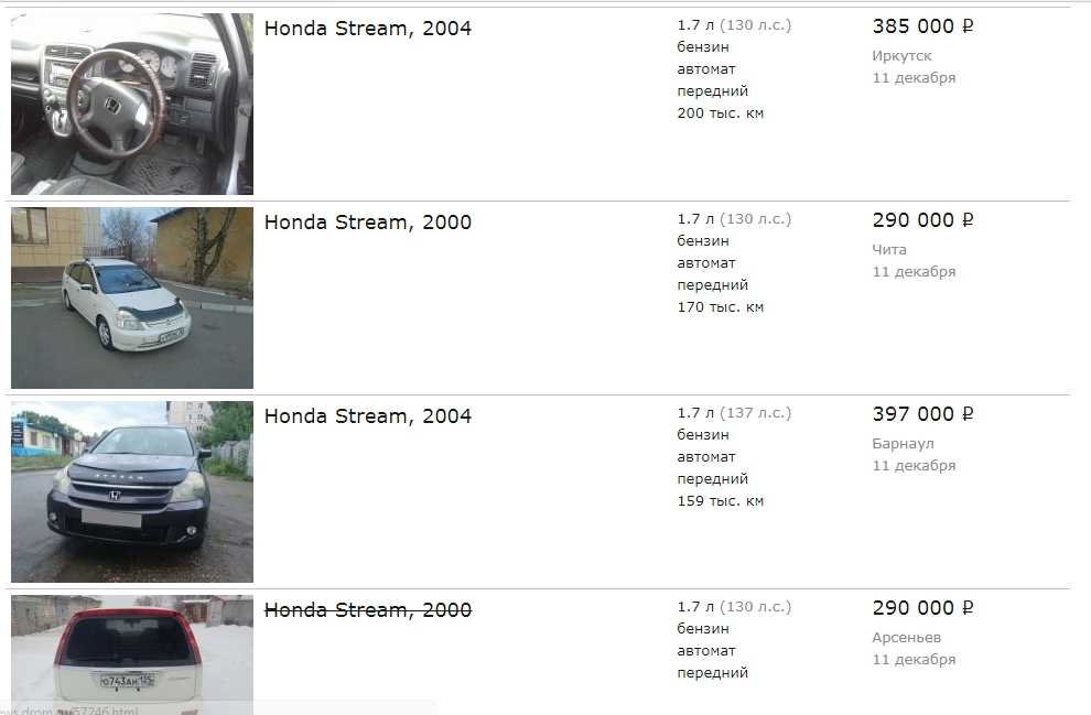 Цены на Хонда Стрим второго поколения начинаются от 500 000 руб и доходят до 900 000 руб.
