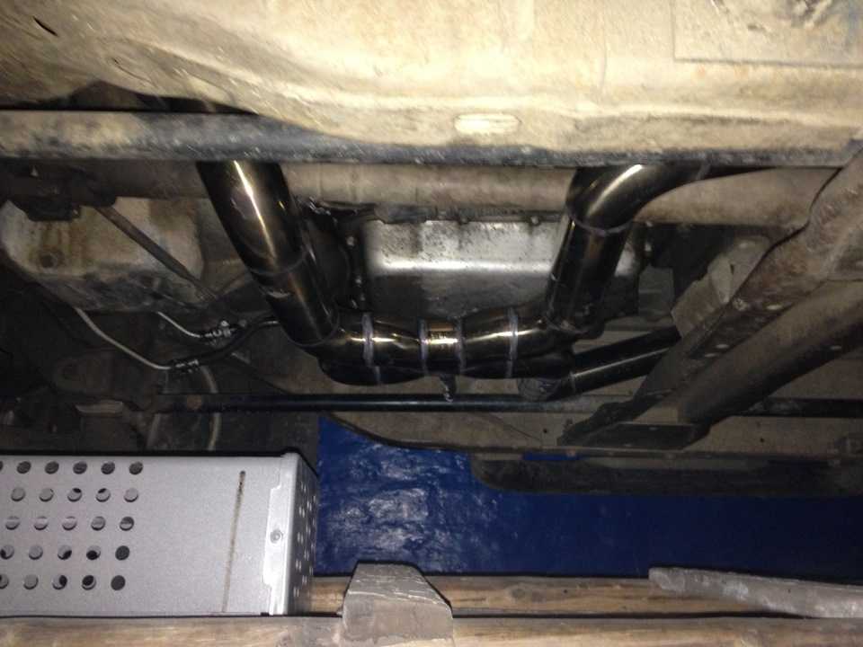 В основном уже все готово, трасса сварена и установлена на машину. Сделано все из нержавейки. От коллекторов идет на Х-Пайп далее на Глассапаки, и назад за бампер.