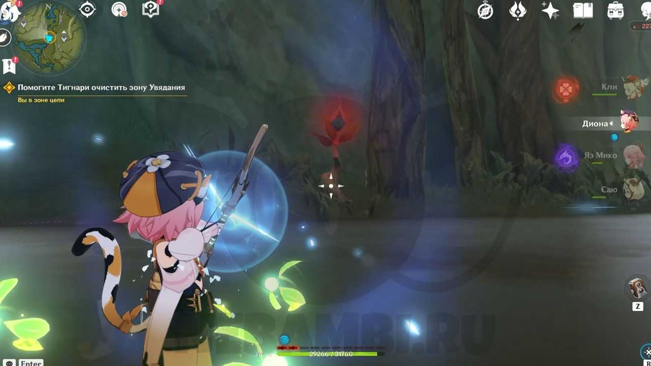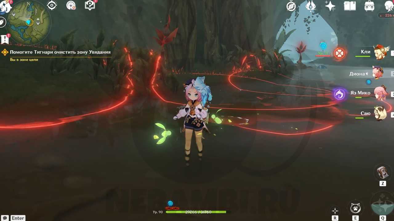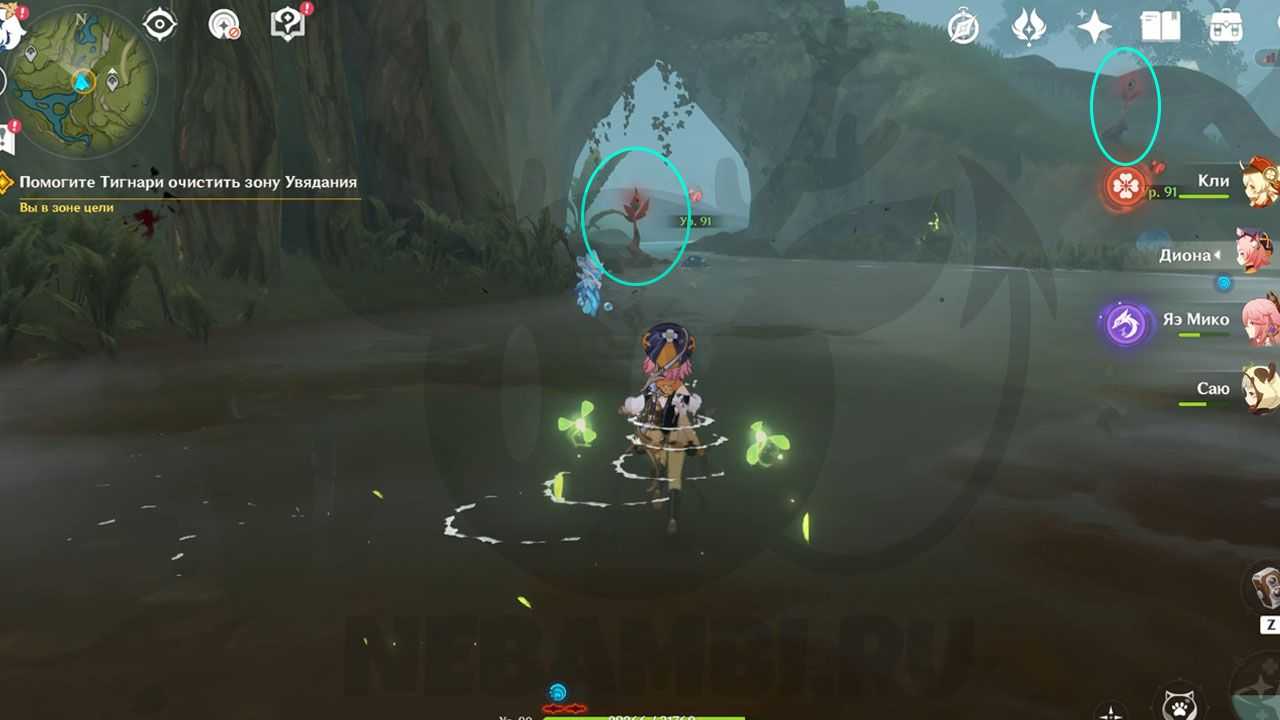 Помогите Тигнари очистить зону Увядания