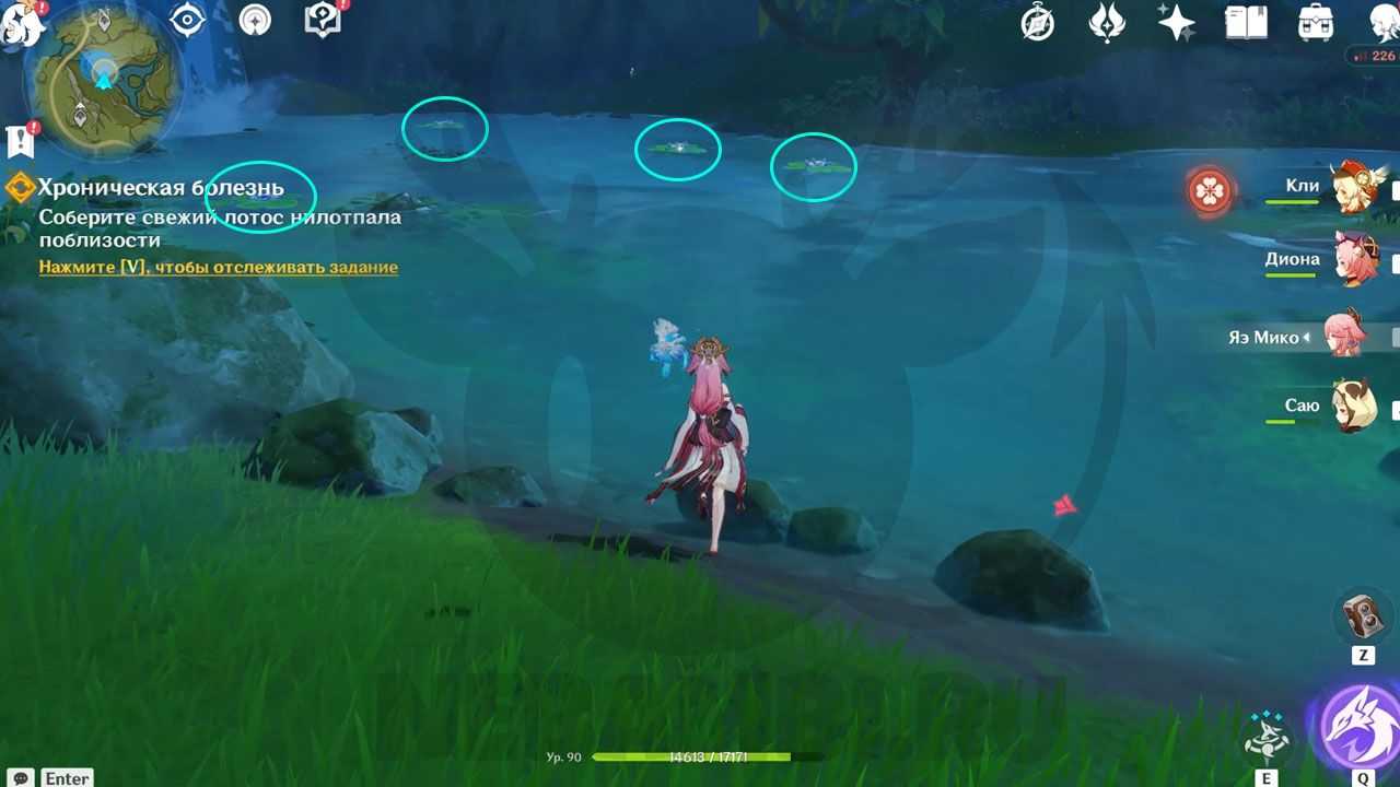 После всех диалогов Тигнари попросит собрать четыре свежих лотоса нилотпала поблизости, они находятся в воде.