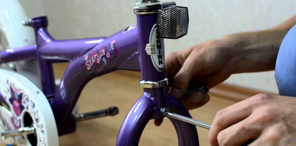 Запрессовка вилки происходит в горизонтальном положении. Как самому сделать велосипед своими руками на этапе запрессовки вилки, пошаговую инструкцию предоставляют мастера: