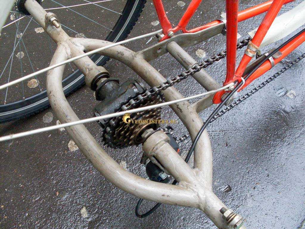 Полноценно функционирующий великий велобайк требует установки на остов рабочих узлов. Самое сложное — установить на свой самодельный велобайк каретку и отладить шатуны и педали. И снова не обойтись без руководства, как сделать велосипед своими руками: